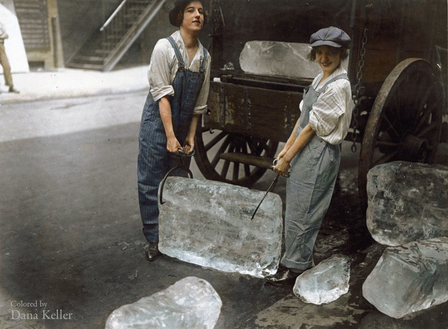 Chicas repartiendo hielo, 1918. (Colorización por Dana Keller).