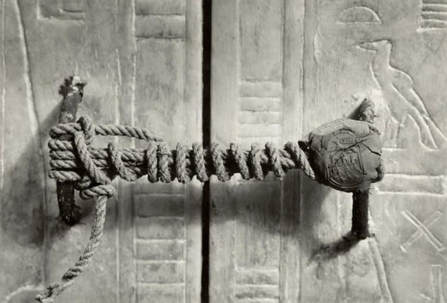 Sello en la entrada de la tumba de Tutankamón (permaneció intacto durante 3245 años), 1922.