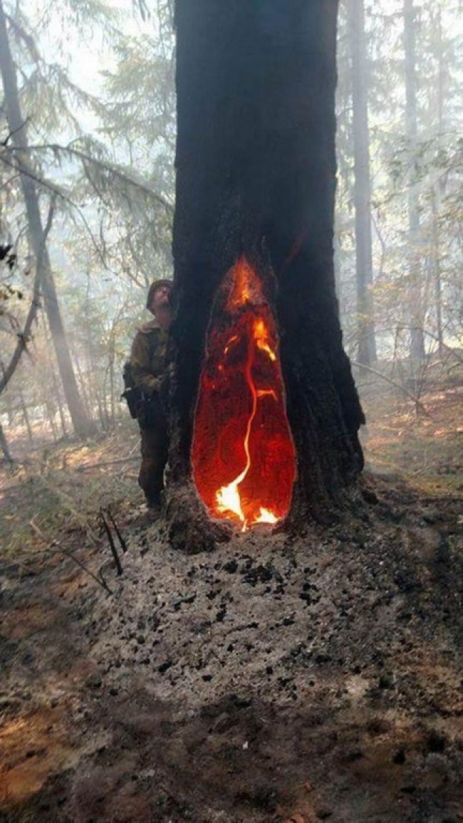 13. Y aquí el relámpago pegó en el árbol y durante 5 días lo estuvo quemando por dentro