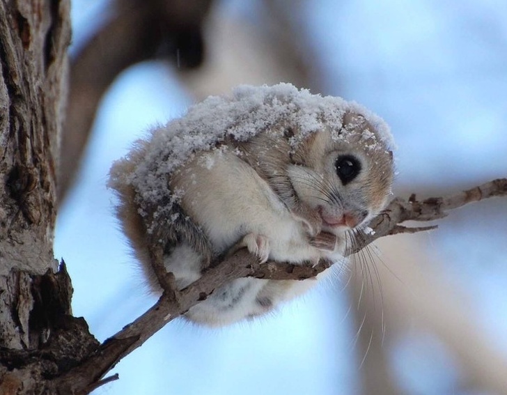 6. Nada especial, solo es una ardilla voladora siberiana con una pequeña capa de nieve cubriéndola