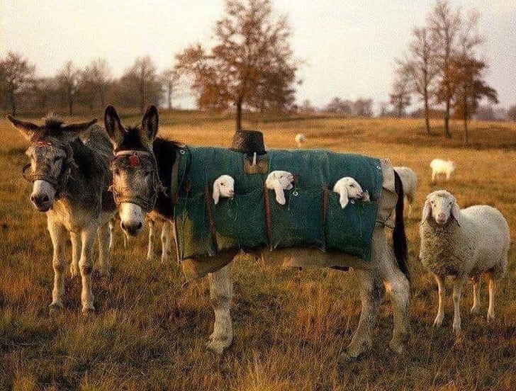 4. Las mulas niñeras se usan en Italia para trasladar corderos hacia otros terrenos