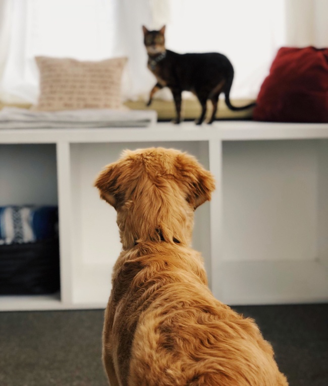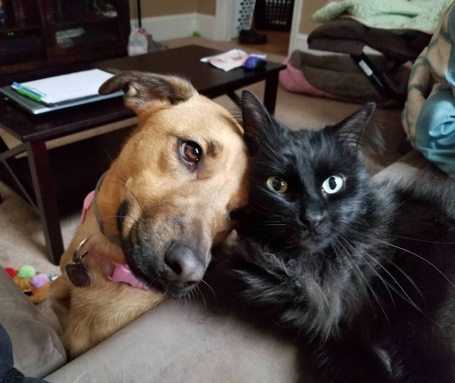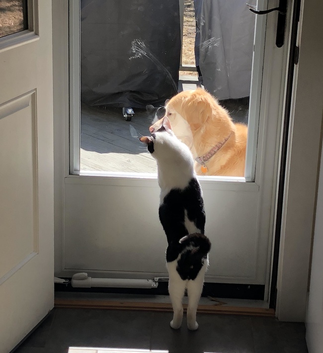 14. “Cada vez que nuestro perro quiere entrar a casa, el gatito salta y maulla para que lo dejemos entrar”