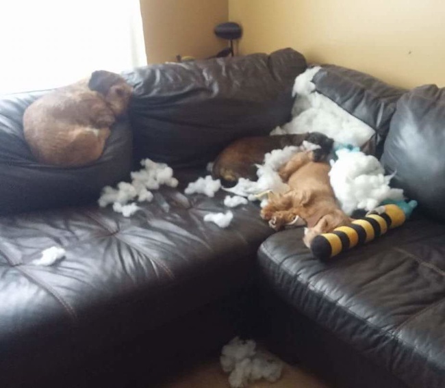 8. “Uno de mis perros rompió un cojín, y a los gatos les encantó su travesura”