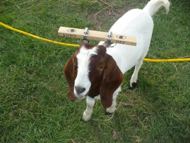 Los cuernos de este cabrito se atoraban muchas veces en la cerca. Sus dueños resolvieron el problema así: