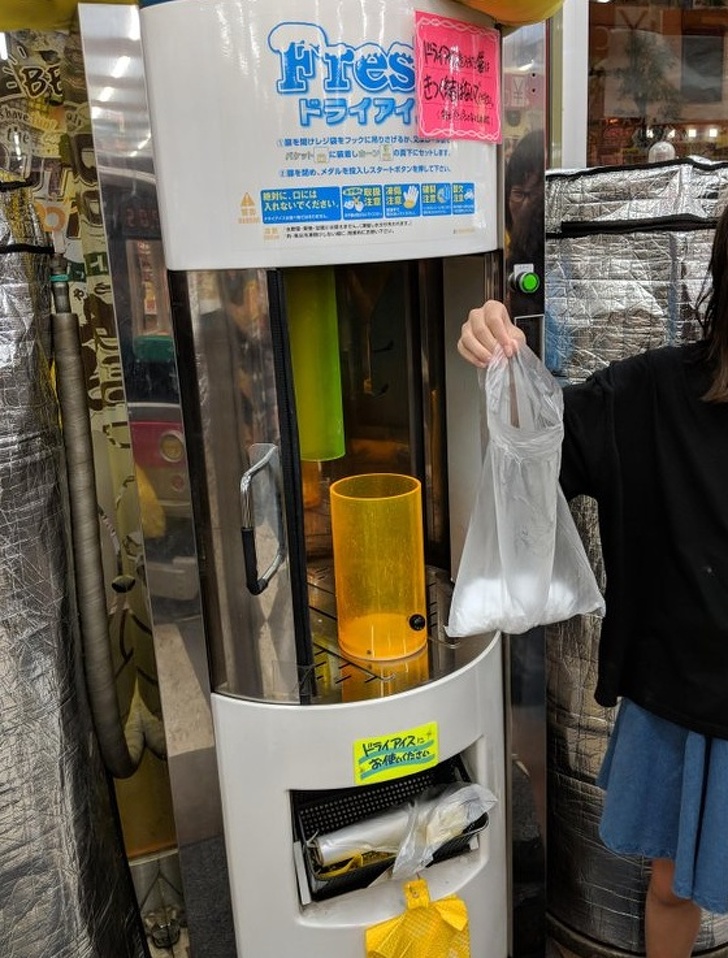 Para conservar tus compras frías, puedes utilizar el generador de hielo seco en un supermercado