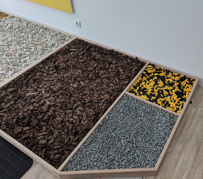 1 – Esta sapataria tem uma área para testar sapatos em diversos tipos de superfície, incluindo Lego: