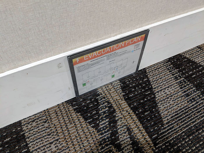 15 – “O Hotel em que estou hospedado tem uma placa com um plano de evacuação de incêndio no nível do solo para que você possa ver se a fumaça tiver preenchido os corredores: