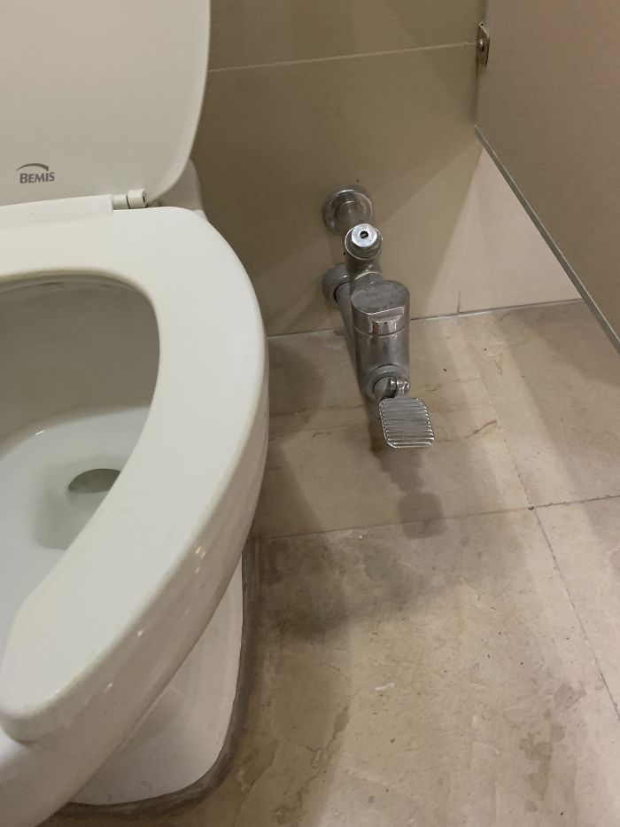 19 – Este vaso sanitário dá a descarga com o uso do pé: