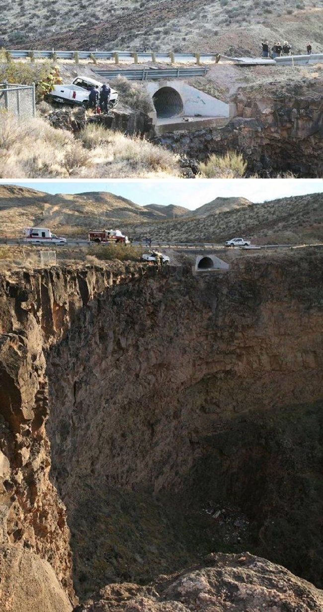 El auto rompió la valla y sobrevoló al otro lado de la zanja del drenaje, haciendo una voltereta en el aire