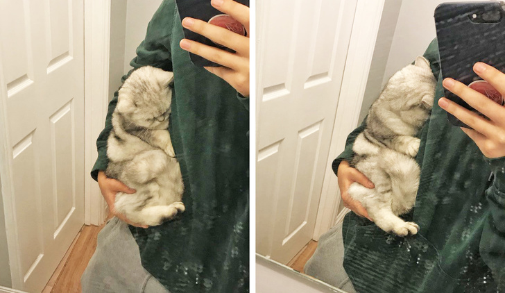 16. This is Pyro, he loves to sit like this in people’s arms and fall asleep.