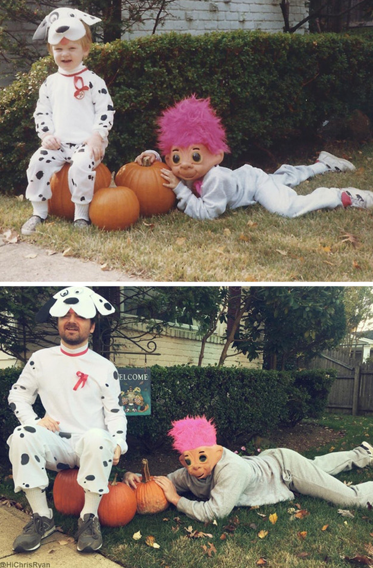 “Para festejar los 25 años del momento de esta vieja imagen, este Halloween nos disfrazamos de igual manera y nos tomamos la misma foto”