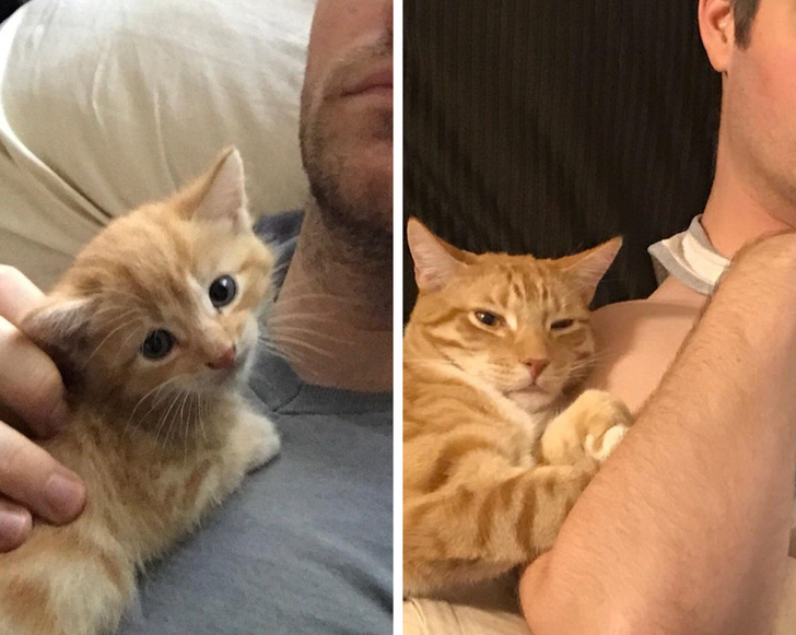 “Mi esposo trajo un gatito de la calle. Incluso después de haber pasado más de un año, al bebé le gusta acostarse encima de su hombro”