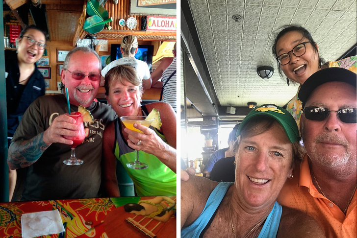 “Hace dos años fui mesera en la fiesta de esta pareja y salí en su foto. Hoy en día esta pareja llegó a otro restaurante donde trabajo y nosotros, por supuesto, nos tomamos la misma foto”