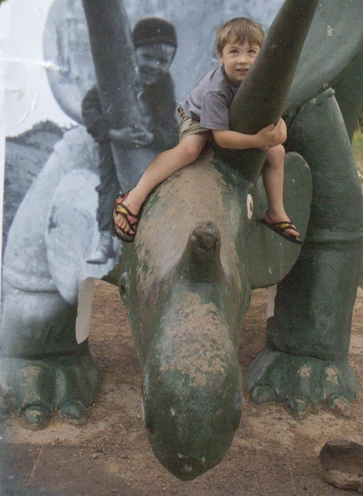 “En la infancia me tomé una foto con este extravagante desconocido y no sospeché que 13 años después lo encontraría nuevamente en el mismo lugar”