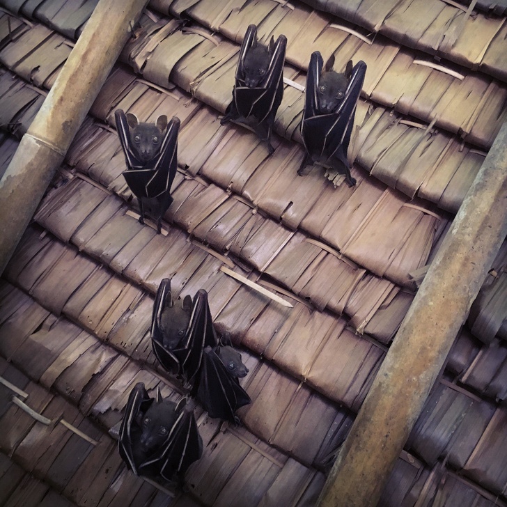 26. Una imagen invertida de lindos murciélagos colgando del techo