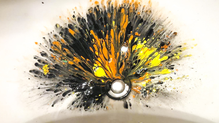 25. Pintura que se cayó en un fregadero y parece un cuadro pintado por Pollock