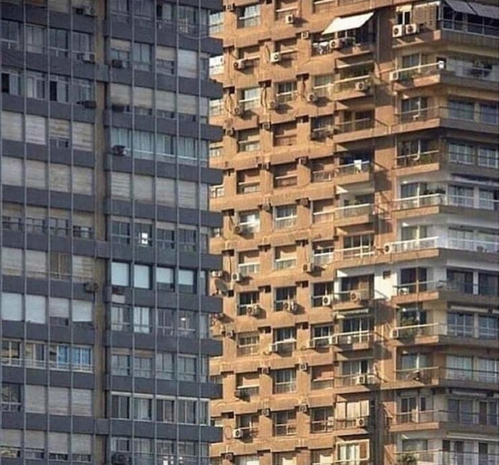 5. Estos dos edificios hacen que sea imposible entender cuál está en la parte delantera y cuál en la posterior
