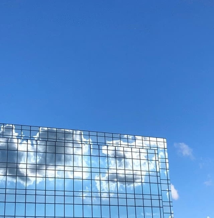 15. Un edificio con espejos que parece una jaula con nubes atrapadas en su interior