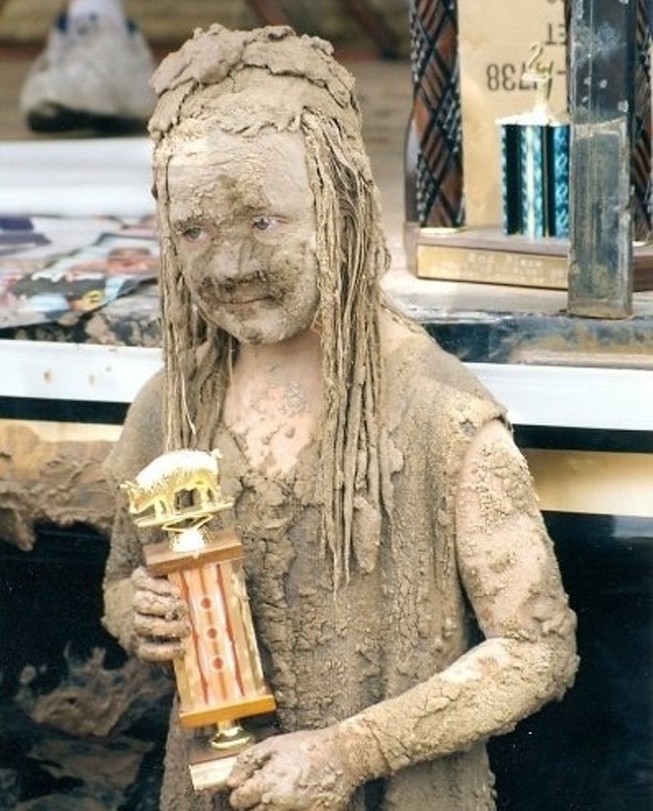 23. “Here I am winning the ‘Little Miss Piggy’ award at a mud volleyball tournament in 1998. I was sprayed down with a fire hose afterward.”