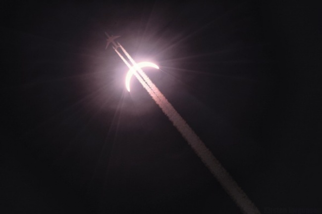 La sombra de la Luna en la Tierra durante un eclipse solar