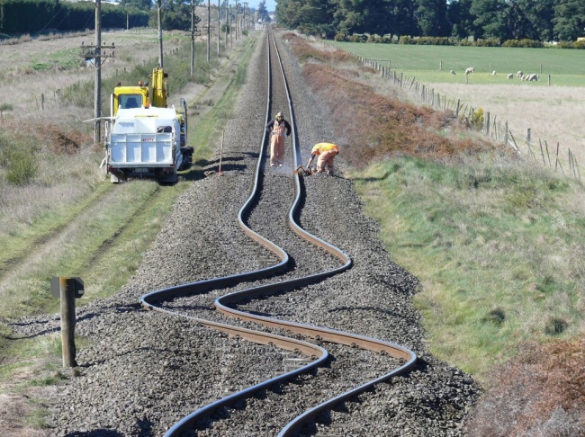 Vías de ferrocarril después de un terremoto en Nueva Zelanda