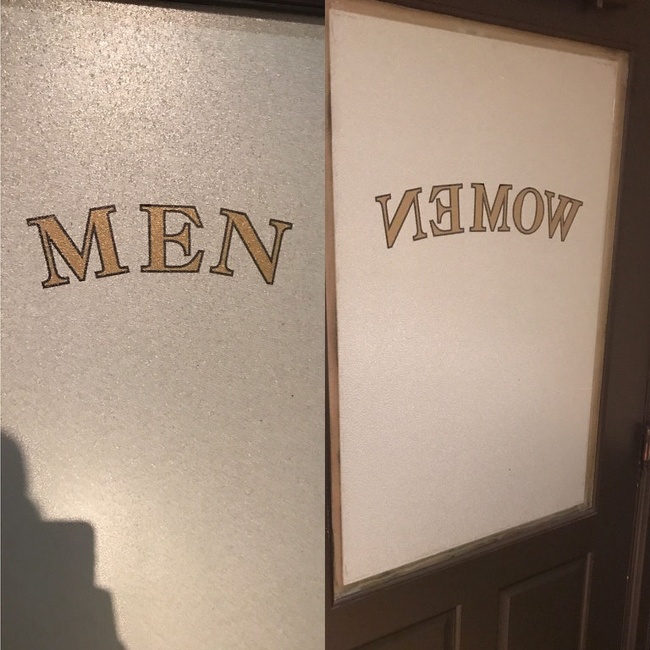 En la puerta del baño dice “hombres” afuera, pero adentro dice “mujeres” al revés, para que pienses que te equivocaste de puerta cuando entraste