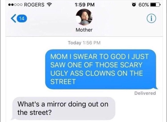 “Mamá, lo juro, ¡acabo de ver por la ventana a uno de esos feos payasos terroríficos, está en la calle!”.