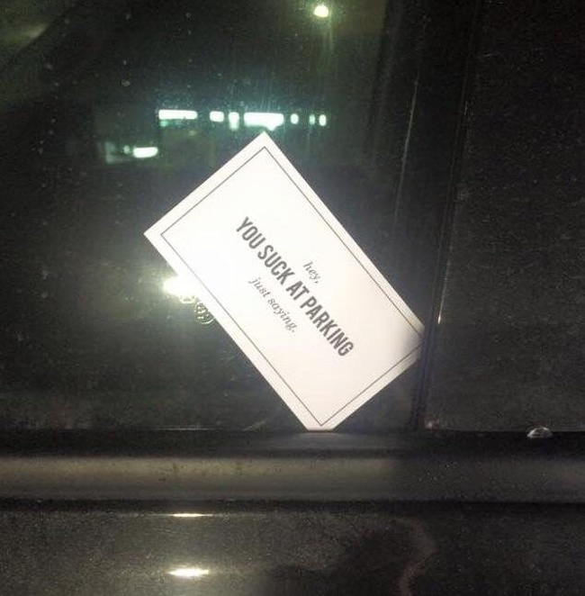 “Oye, eres malísimo aparcando, solo quería decírtelo”.