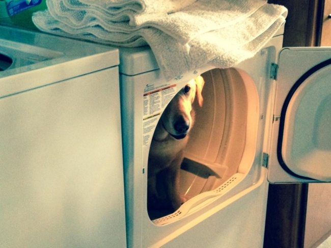 She hates doing laundry, she’ll never find me here!