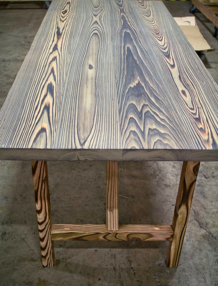 30. Mesa de madera que se prendió fuego a propósito para resaltar sus vetas