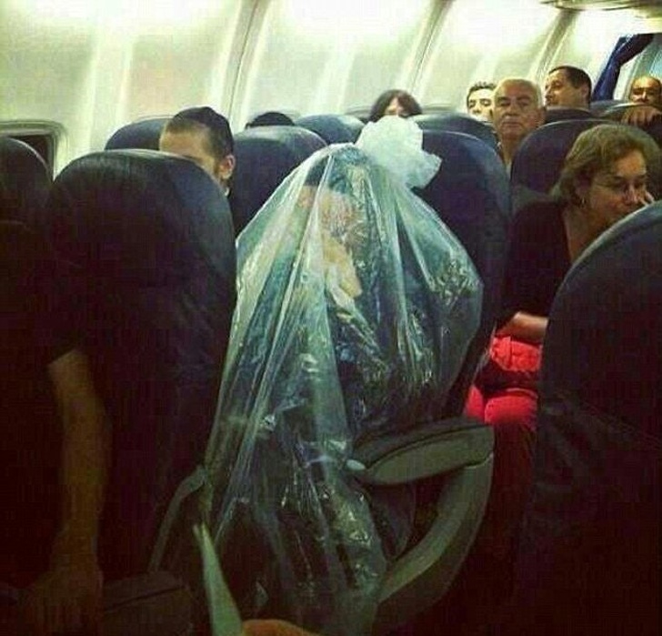 26. Mientras tanto, en un vuelo, alguien se metió en una bolsa de plástico