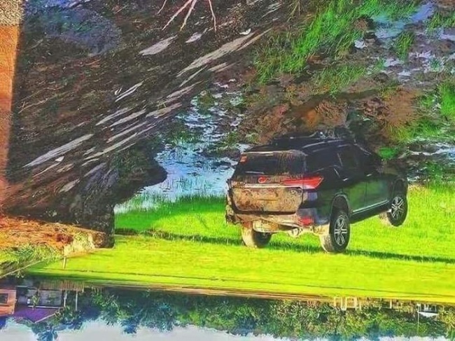¿Pintura al óleo? No, es solo el reflejo de un todoterreno volcado en el agua