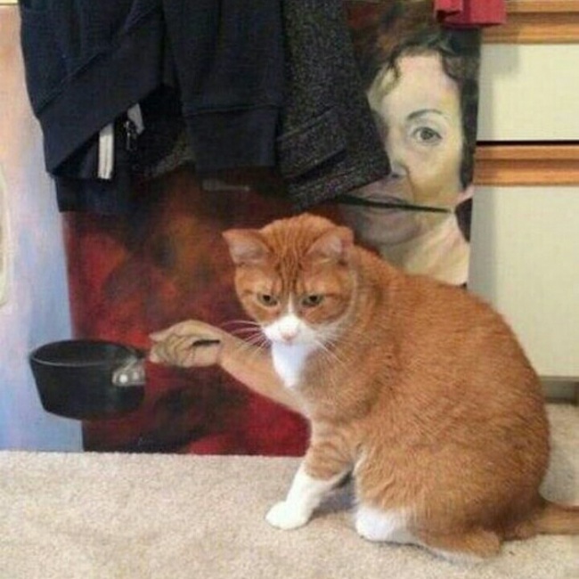 Ratones, ¡cuidado! Este gato tiene un arma en la mano y no tiene miedo de utilizarla