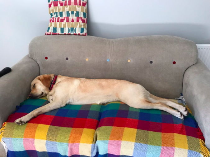 This is Winston. He trained to be a guide dog but failed for being too lazy or, officially, ‘low motivation’ now spends 95% of his time snoozing.