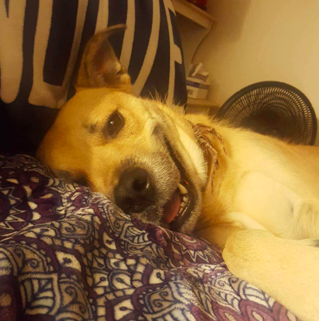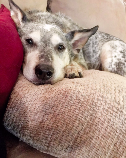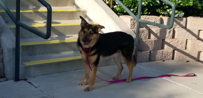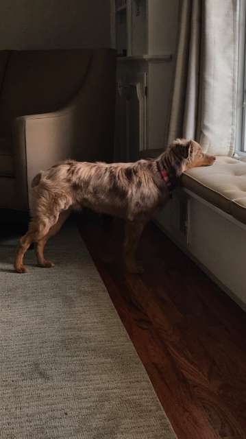 Here’s our rescue Shepherd mix Amani. She was bred to herd livestock but is afraid of Yorkies, Pomeranians and pretty much any moving object.