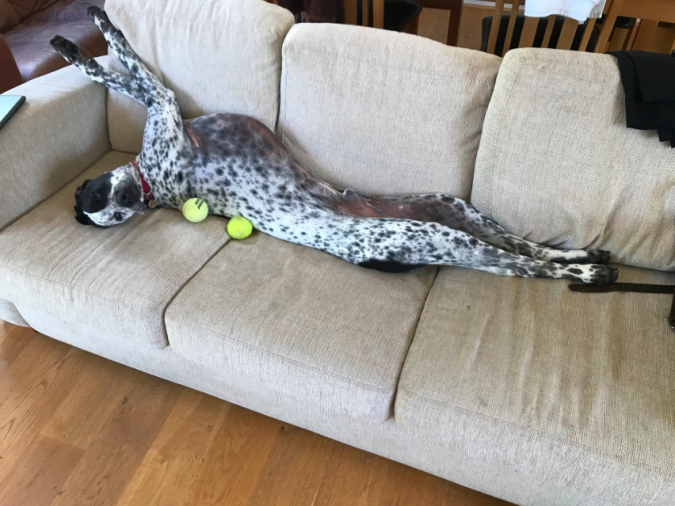 This is Kodi, he’s a rescue, pretty sure he’s part ridgeback (bred for killing lions) and part obsessive ball chaser who lives in fear of water. Always makes sure you don’t wake up from a nap alone. He’s a good boy.