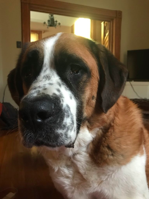 Saint Bernard, bred to save people lost in the freezing Alps, now excels at laying on top of air conditioning vents, refusing to stand even if you offer her a treat, and occasionally barking at squirrels or at nothing at all.