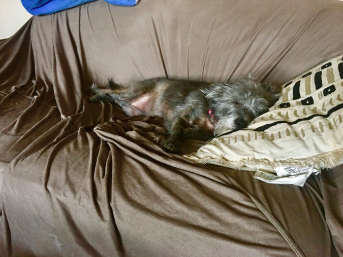 Our rescue pup Mochi is a Terrier mix. She’s very likely part Glen of Imaal Terrier, a gentle breed that was bred for “hard work”…More like “hardly working”!!