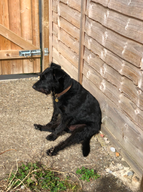 Patterdale (plus a bit of poodle) terrier Ebony is meant to be out helping get foxes and badgers. Instead sits around & sometimes even barks at the bird feeder.