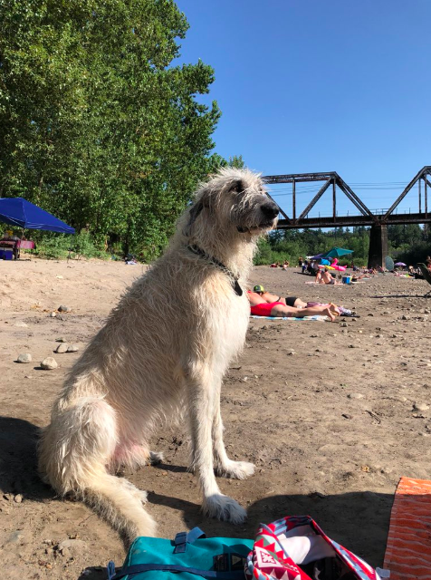 This is Murdoch. The legendary “Cú Faoil” or Irish Wolfhound. Bred for hunting wolves, elk and pulling grown men off their horses in battle. These days he’s a professional cuddler, pork chop thief and is surprised by his own farts.