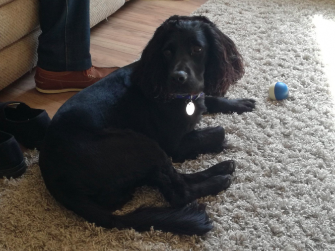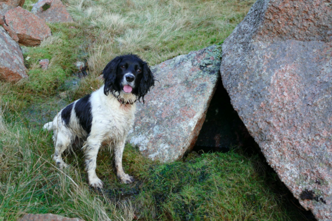 This is Kyra who was bred to ‘spring’ game fowl from moorland. The only practical thing she does now is discovering sources of water, but as we live in Scotland, this isn’t really that useful.