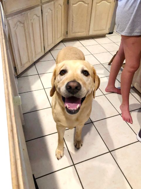 This is Gregor, he was bred and trained to be a guide dog for the blind but he was too friendly and got distracted by new friends so he’s now a house pet and he’s thriving.