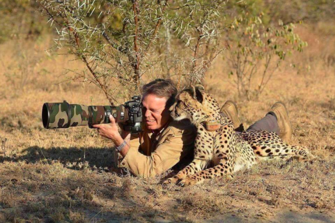 This guy seems remarkably chill for being mounted by a baby cheetah, which probably means mama cheetah is nearby.