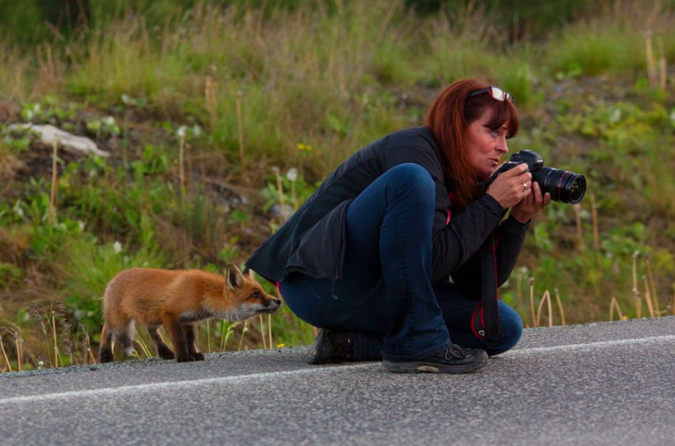 That fox is getting a crash course in apertures, lenses, and all that other photography stuff. Told you foxes are pretty smart.