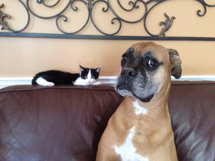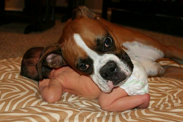 29. “Nuestro bóxer conociendo a nuestro adorable bebé recién nacido”