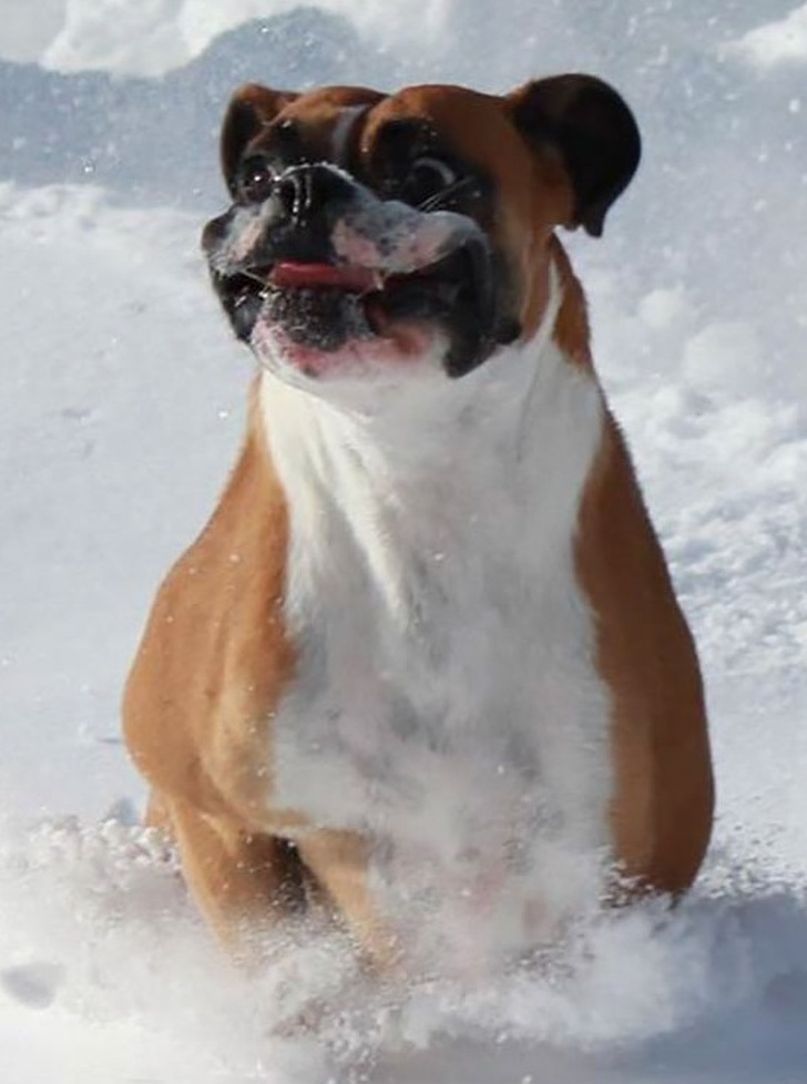 8. Este bóxer está rebotando en la nieve