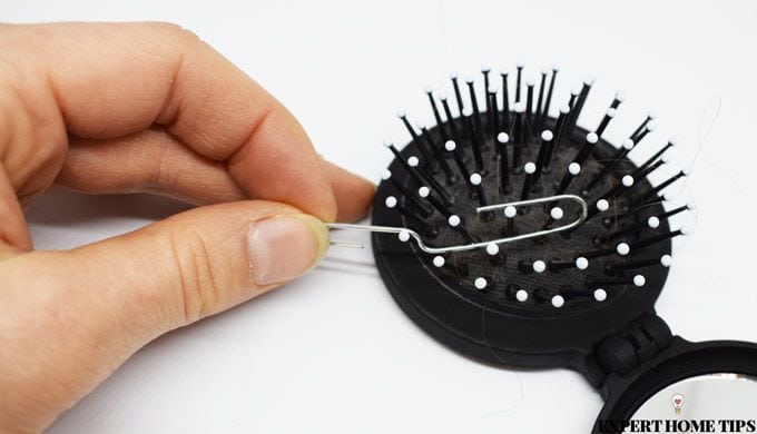 Before you clean your brushes, you need to pull all the hair up. Straighten out a paperclip and use it to pull the hair up. You can clean your brush once all the hair is off.