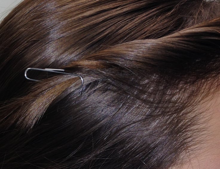 Need a hair clip? You can use a paper clip in a pinch. Just use it to tuck your hair up.