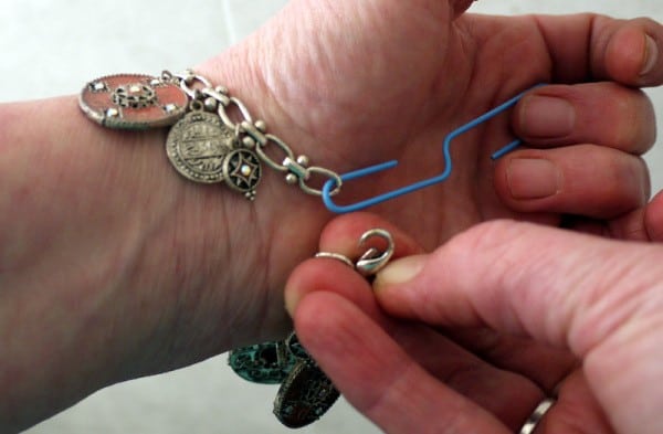 It can be almost impossible to put on a bracelet by yourself. But not if you use a paper clip. Place your paper clip through one jumper ring and hold it in your hand and use it the other hand to clip it.