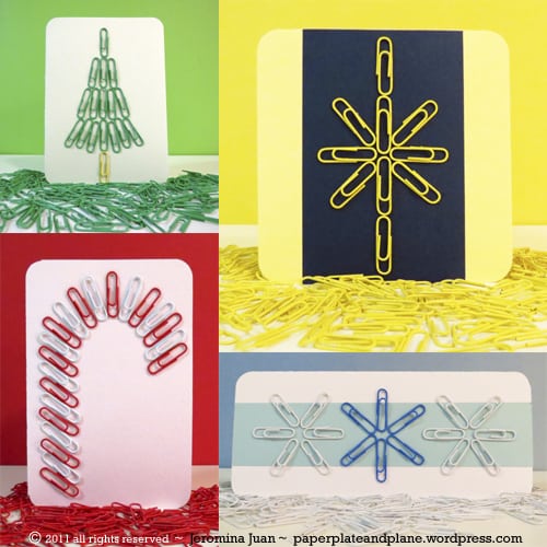 You can use paper clips to make some really pretty decorative homemade cards. They work especially well for holiday cards.